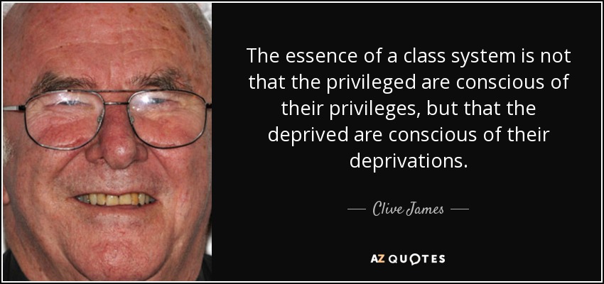 The essence of a class system is not that the privileged are conscious of their privileges, but that the deprived are conscious of their deprivations.