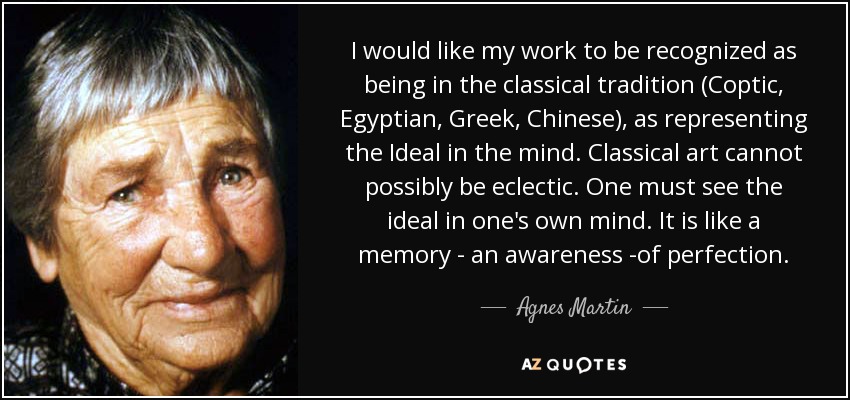 I would like my work to be recognized as being in the classical tradition (Coptic, Egyptian, Greek, Chinese), as representing the Ideal in the mind. Classical art cannot possibly be eclectic. One must see the ideal in one's own mind. It is like a memory - an awareness -of perfection.