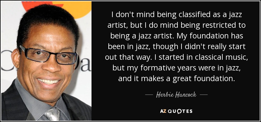 I don't mind being classified as a jazz artist, but I do mind being restricted to being a jazz artist. My foundation has been in jazz, though I didn't really start out that way. I started in classical music, but my formative years were in jazz, and it makes a great foundation.