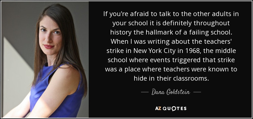 If you're afraid to talk to the other adults in your school it is definitely throughout history the hallmark of a failing school. When I was writing about the teachers' strike in New York City in 1968, the middle school where events triggered that strike was a place where teachers were known to hide in their classrooms.