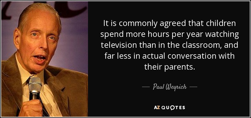 It is commonly agreed that children spend more hours per year watching television than in the classroom, and far less in actual conversation with their parents.