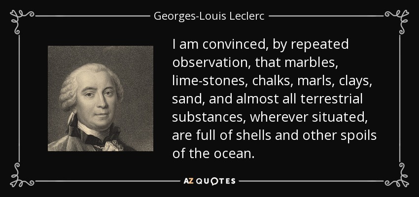 I am convinced, by repeated observation, that marbles, lime-stones, chalks, marls, clays, sand, and almost all terrestrial substances, wherever situated, are full of shells and other spoils of the ocean.