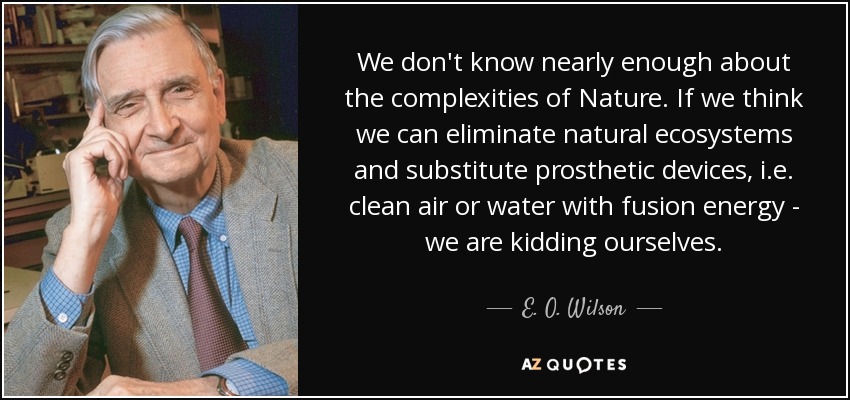 We don't know nearly enough about the complexities of Nature. If we think we can eliminate natural ecosystems and substitute prosthetic devices, i.e. clean air or water with fusion energy - we are kidding ourselves.