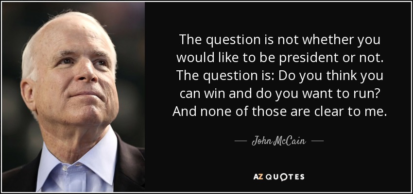 The question is not whether you would like to be president or not. The question is: Do you think you can win and do you want to run? And none of those are clear to me.