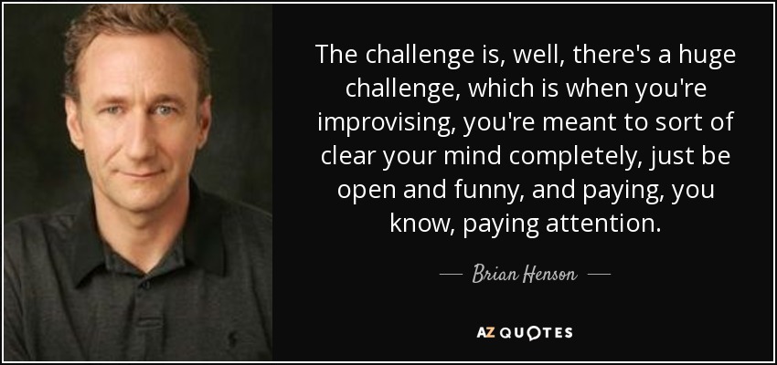 The challenge is, well, there's a huge challenge, which is when you're improvising, you're meant to sort of clear your mind completely, just be open and funny, and paying, you know, paying attention.
