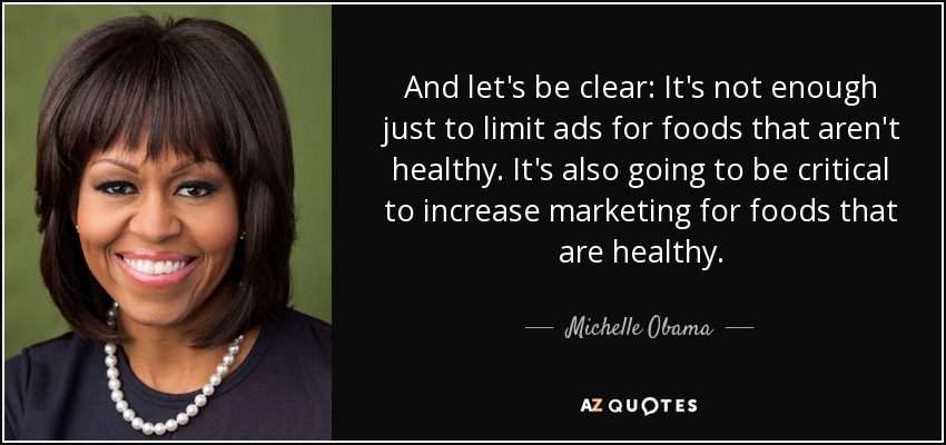 And let's be clear: It's not enough just to limit ads for foods that aren't healthy. It's also going to be critical to increase marketing for foods that are healthy.
