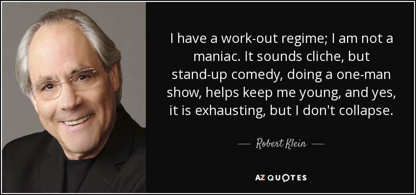 I have a work-out regime; I am not a maniac. It sounds cliche, but stand-up comedy, doing a one-man show, helps keep me young, and yes, it is exhausting, but I don't collapse.