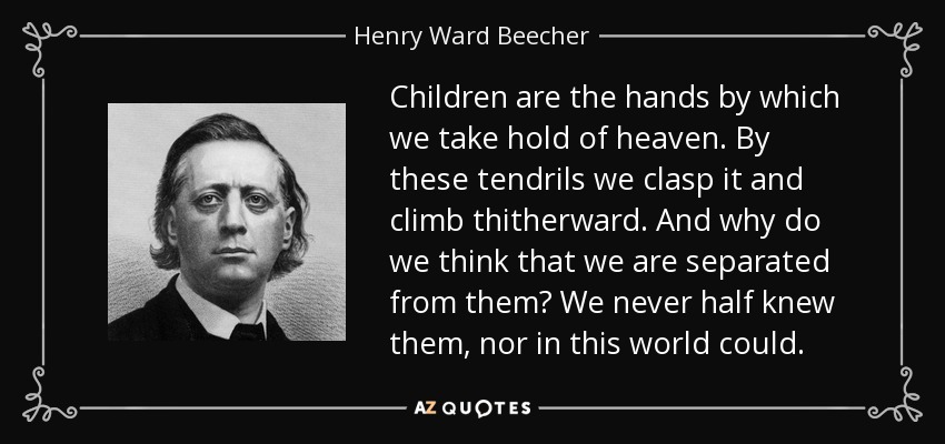 Children are the hands by which we take hold of heaven. By these tendrils we clasp it and climb thitherward. And why do we think that we are separated from them? We never half knew them, nor in this world could.