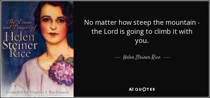 No matter how steep the mountain - the Lord is going to climb it with you.