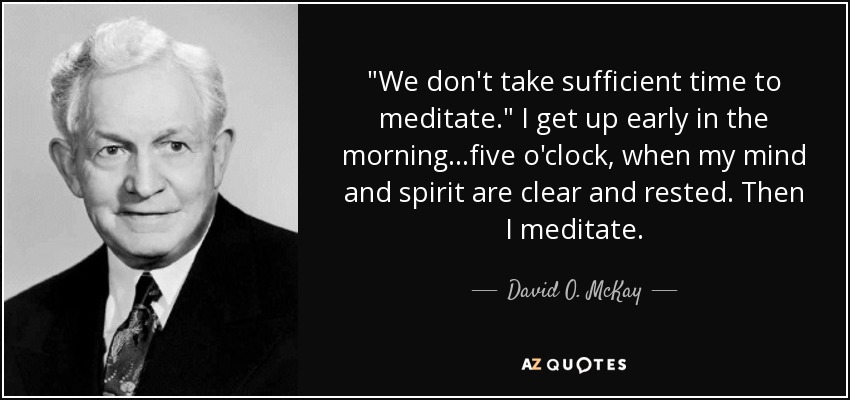 "We don't take sufficient time to meditate." I get up early in the morning...five o'clock, when my mind and spirit are clear and rested. Then I meditate.