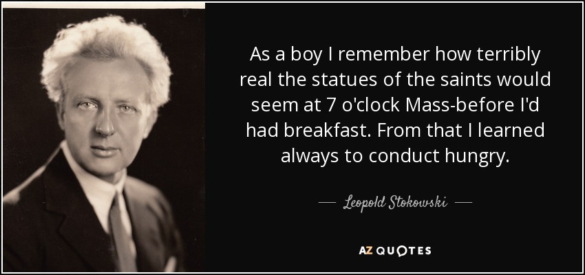As a boy I remember how terribly real the statues of the saints would seem at 7 o'clock Mass-before I'd had breakfast. From that I learned always to conduct hungry.