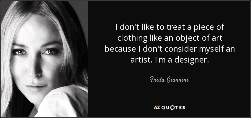 I don't like to treat a piece of clothing like an object of art because I don't consider myself an artist. I'm a designer.