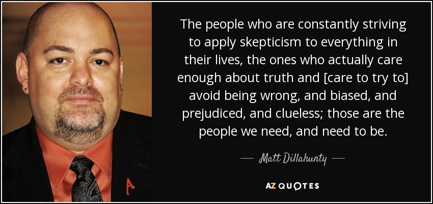 The people who are constantly striving to apply skepticism to everything in their lives, the ones who actually care enough about truth and [care to try to] avoid being wrong, and biased, and prejudiced, and clueless; those are the people we need, and need to be.