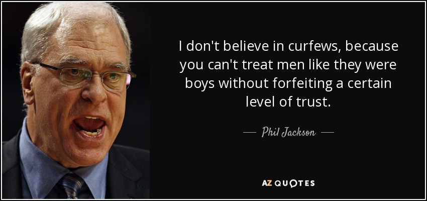 I don't believe in curfews, because you can't treat men like they were boys without forfeiting a certain level of trust.