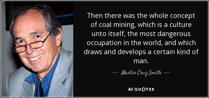 Then there was the whole concept of coal mining, which is a culture unto itself, the most dangerous occupation in the world, and which draws and develops a certain kind of man.