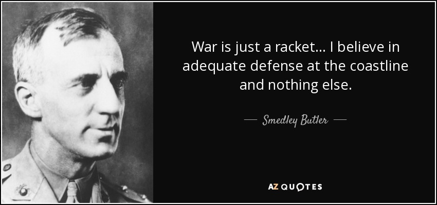 War is just a racket... I believe in adequate defense at the coastline and nothing else.