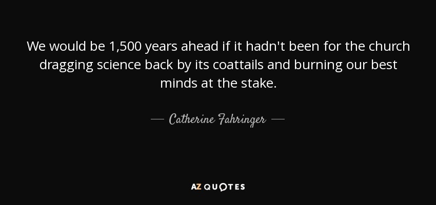 We would be 1,500 years ahead if it hadn't been for the church dragging science back by its coattails and burning our best minds at the stake.