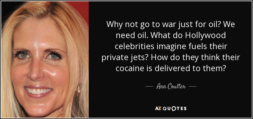 Why not go to war just for oil? We need oil. What do Hollywood celebrities imagine fuels their private jets? How do they think their cocaine is delivered to them?