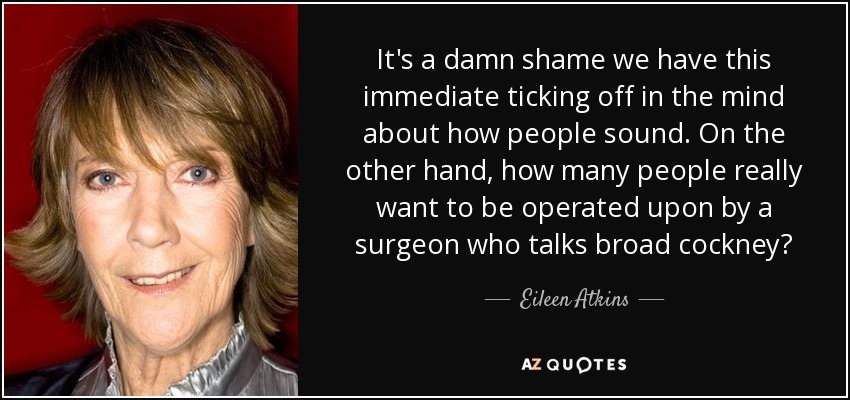 It's a damn shame we have this immediate ticking off in the mind about how people sound. On the other hand, how many people really want to be operated upon by a surgeon who talks broad cockney?