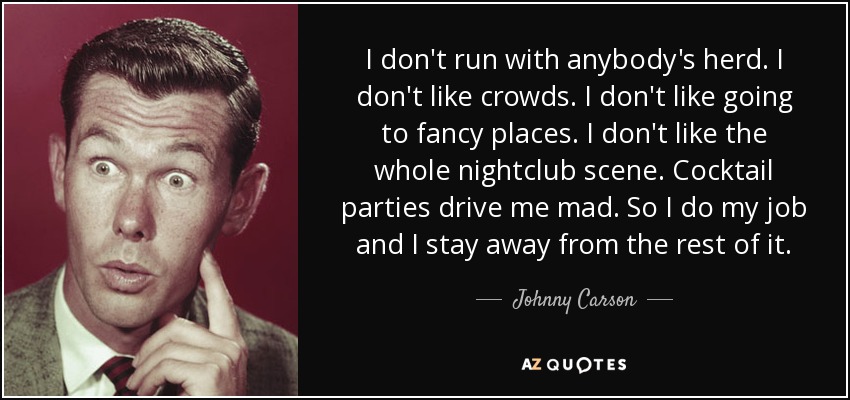 I don't run with anybody's herd. I don't like crowds. I don't like going to fancy places. I don't like the whole nightclub scene. Cocktail parties drive me mad. So I do my job and I stay away from the rest of it.