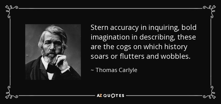 Stern accuracy in inquiring, bold imagination in describing, these are the cogs on which history soars or flutters and wobbles.