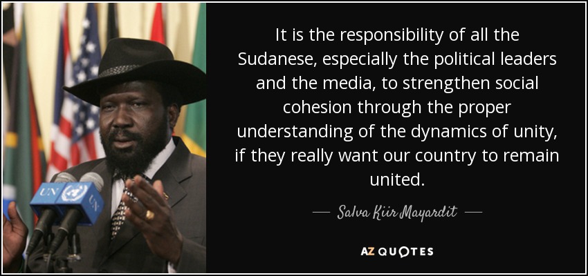 It is the responsibility of all the Sudanese, especially the political leaders and the media, to strengthen social cohesion through the proper understanding of the dynamics of unity, if they really want our country to remain united.