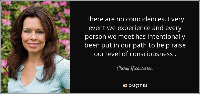 There are no coincidences. Every event we experience and every person we meet has intentionally been put in our path to help raise our level of consciousness .