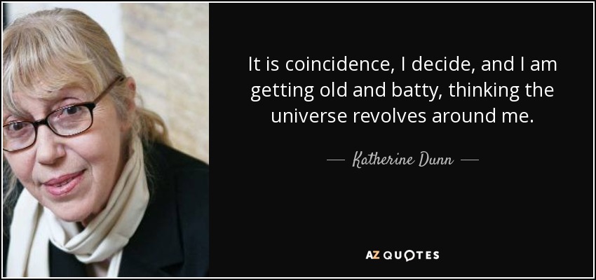 It is coincidence, I decide, and I am getting old and batty, thinking the universe revolves around me.