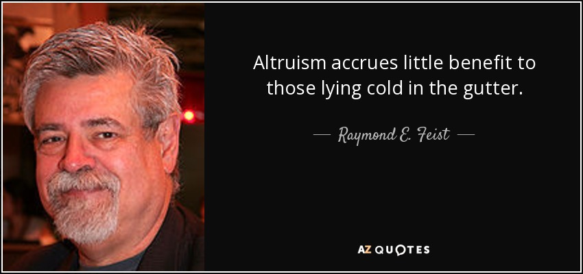 Altruism accrues little benefit to those lying cold in the gutter.