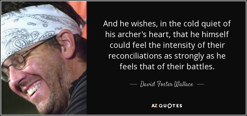 And he wishes, in the cold quiet of his archer's heart, that he himself could feel the intensity of their reconciliations as strongly as he feels that of their battles.