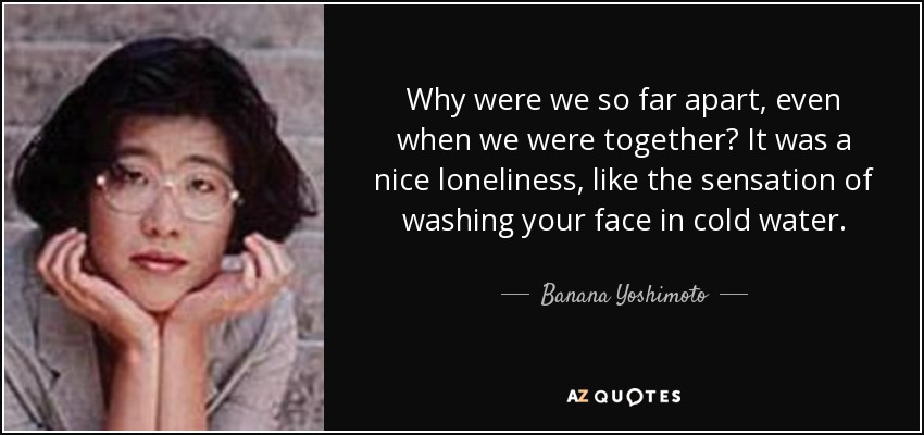 Why were we so far apart, even when we were together? It was a nice loneliness, like the sensation of washing your face in cold water.