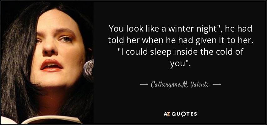 You look like a winter night", he had told her when he had given it to her. "I could sleep inside the cold of you".