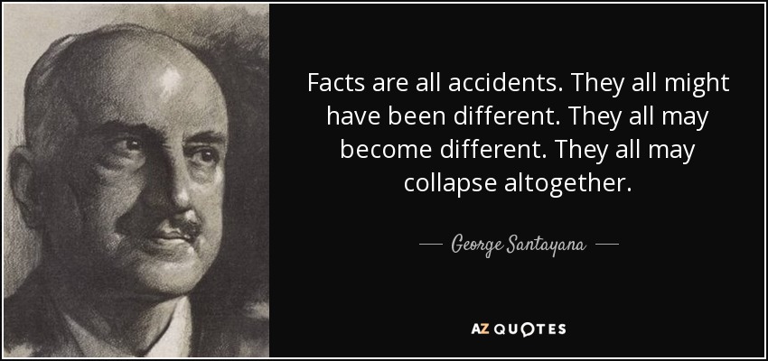 Facts are all accidents. They all might have been different. They all may become different. They all may collapse altogether.