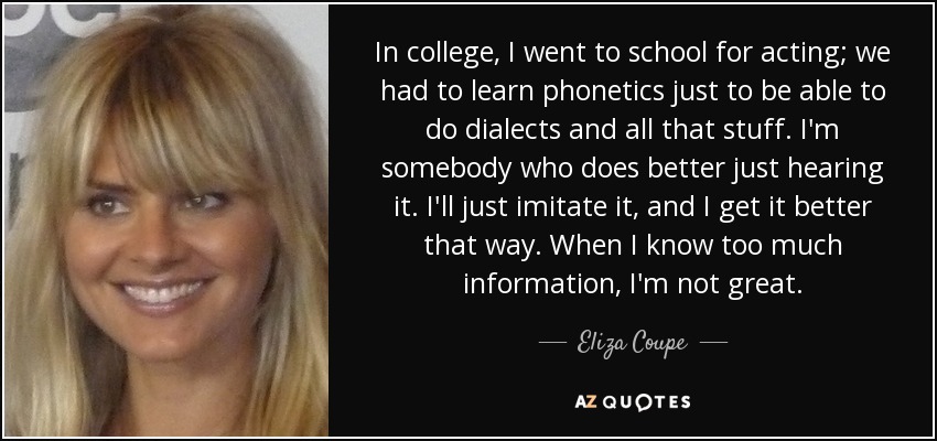 In college, I went to school for acting; we had to learn phonetics just to be able to do dialects and all that stuff. I'm somebody who does better just hearing it. I'll just imitate it, and I get it better that way. When I know too much information, I'm not great.
