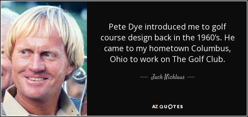 Pete Dye introduced me to golf course design back in the 1960's. He came to my hometown Columbus, Ohio to work on The Golf Club.