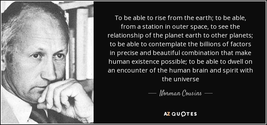 To be able to rise from the earth; to be able, from a station in outer space, to see the relationship of the planet earth to other planets; to be able to contemplate the billions of factors in precise and beautiful combination that make human existence possible; to be able to dwell on an encounter of the human brain and spirit with the universe