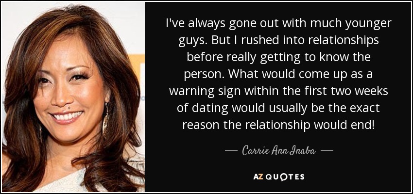 I've always gone out with much younger guys. But I rushed into relationships before really getting to know the person. What would come up as a warning sign within the first two weeks of dating would usually be the exact reason the relationship would end!
