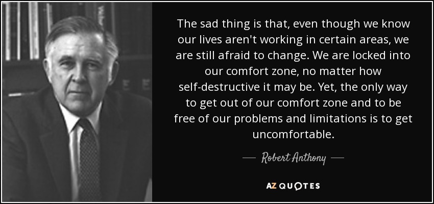 The sad thing is that, even though we know our lives aren't working in certain areas, we are still afraid to change. We are locked into our comfort zone, no matter how self-destructive it may be. Yet, the only way to get out of our comfort zone and to be free of our problems and limitations is to get uncomfortable.