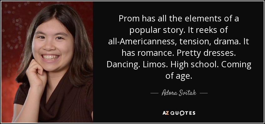 Prom has all the elements of a popular story. It reeks of all-Americanness, tension, drama. It has romance. Pretty dresses. Dancing. Limos. High school. Coming of age.