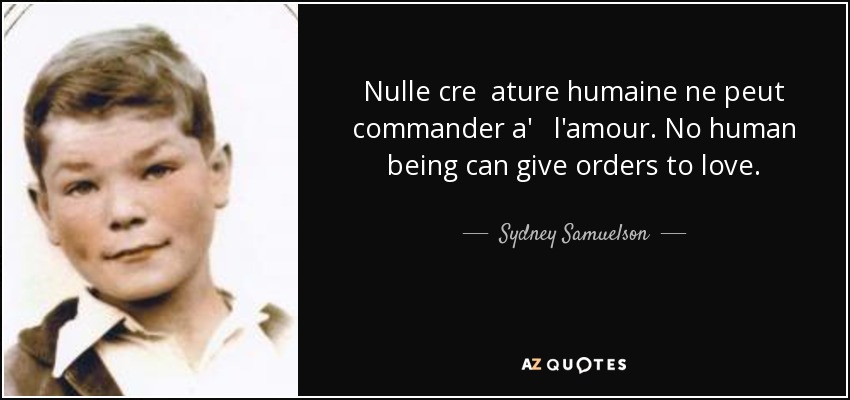 Nulle cre ature humaine ne peut commander a' l'amour. No human being can give orders to love.
