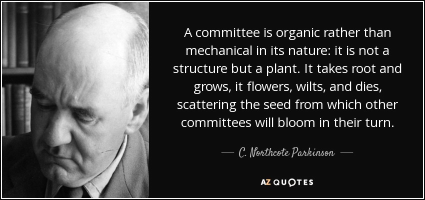 A committee is organic rather than mechanical in its nature: it is not a structure but a plant. It takes root and grows, it flowers, wilts, and dies, scattering the seed from which other committees will bloom in their turn.
