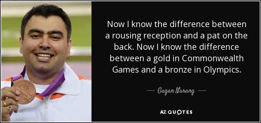 Now I know the difference between a rousing reception and a pat on the back. Now I know the difference between a gold in Commonwealth Games and a bronze in Olympics.