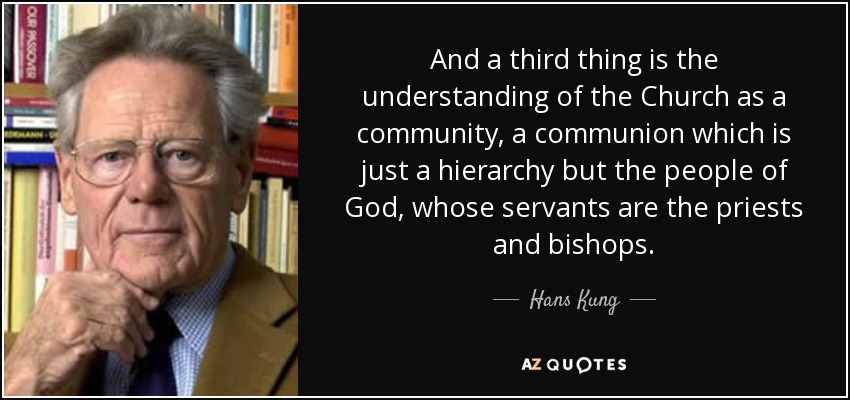 And a third thing is the understanding of the Church as a community, a communion which is just a hierarchy but the people of God, whose servants are the priests and bishops.
