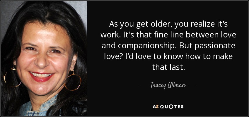 As you get older, you realize it's work. It's that fine line between love and companionship. But passionate love? I'd love to know how to make that last.