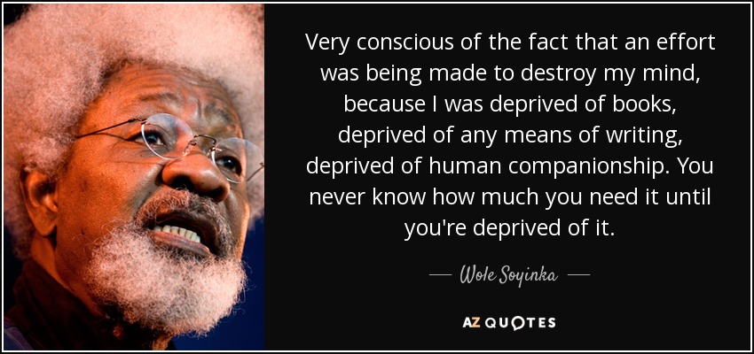 Very conscious of the fact that an effort was being made to destroy my mind, because I was deprived of books, deprived of any means of writing, deprived of human companionship. You never know how much you need it until you're deprived of it.
