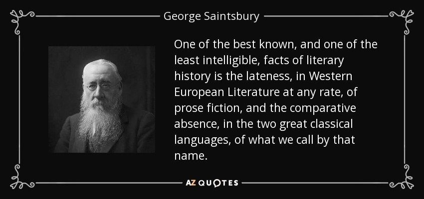 One of the best known, and one of the least intelligible, facts of literary history is the lateness, in Western European Literature at any rate, of prose fiction, and the comparative absence, in the two great classical languages, of what we call by that name.