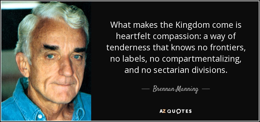 What makes the Kingdom come is heartfelt compassion: a way of tenderness that knows no frontiers, no labels, no compartmentalizing, and no sectarian divisions.
