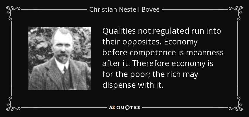 Qualities not regulated run into their opposites. Economy before competence is meanness after it. Therefore economy is for the poor; the rich may dispense with it.