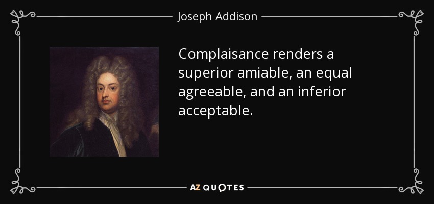 Complaisance renders a superior amiable, an equal agreeable, and an inferior acceptable.