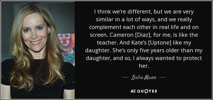 I think we're different, but we are very similar in a lot of ways, and we really complement each other in real life and on screen. Cameron [Diaz], for me, is like the teacher. And Kate's [Uptone] like my daughter. She's only five years older than my daughter, and so, I always wanted to protect her.